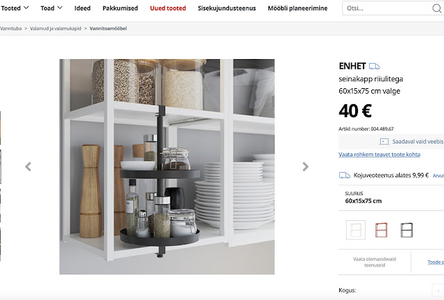 Oleme tellinud kolm korda IKEA kaupa koju, seda vaatamata kojuveo krõbedale, 70-eurosele hinnale. Põhjuseks on asjaolu, et Tallinna teeninduspunkti on Lõuna-Eestist tülikas ja ka ohtlik sõita, sama lugu on Riia poega.